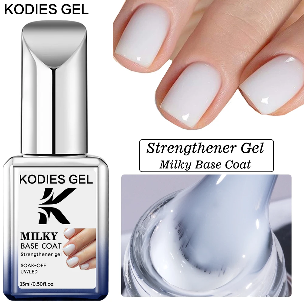 KODIES GEL Milky White Rubber Base Gel Nail Polish Strong Semi permanent UV/LED Camouflage Base Varnish Ridge Filler Manicure