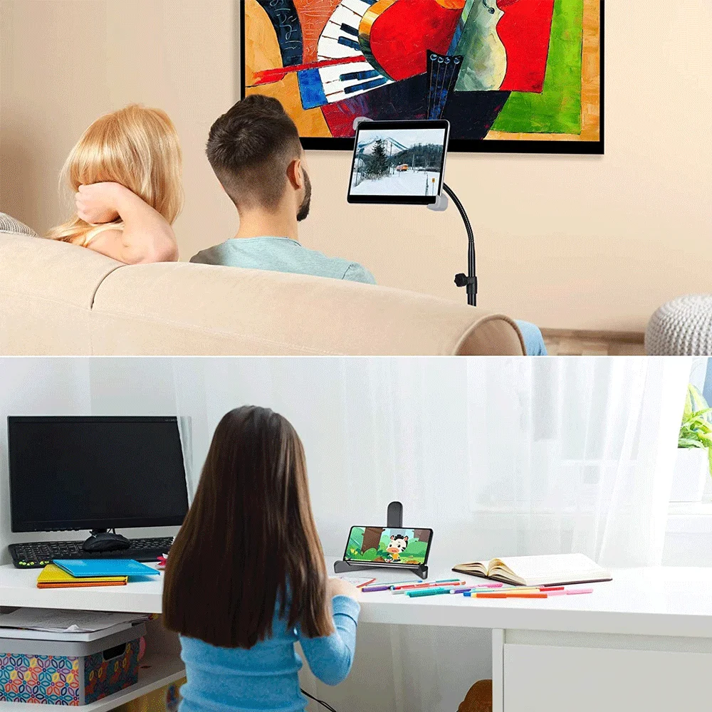 The tablet holder can be rotated 360 degree, making it easy to switch your tablet from portrait mode to landscape mode.